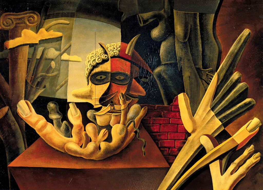 DÄMONISCHES FRÜHSTÜCK (INFERNO, LÜGNERISCHES BILD), 1934 Tempera und Öl auf Karton, lackiert, 57 x 78,5 cm Aargauer Kunsthaus Aarau, Fotocredit: Jörg Müller, Aarau