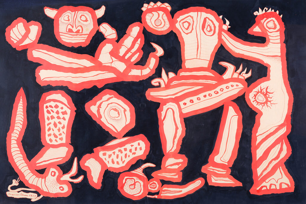 PERSISCHE FABEL, 1953 Rote Tusche und Tempera, auf Papier aufgezogen, 64 x 94 cm Max von Moos Stiftung